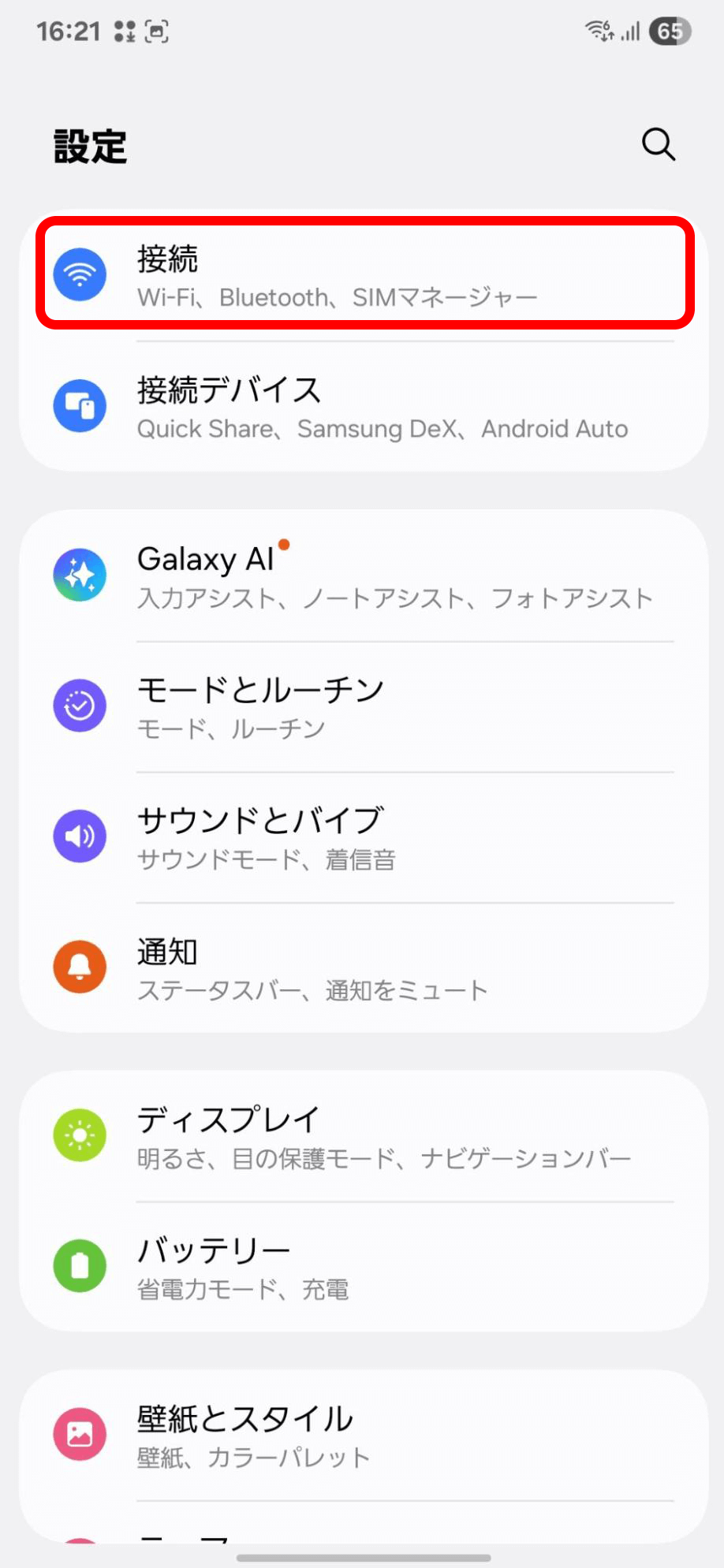 「設定」から「接続」をタップ