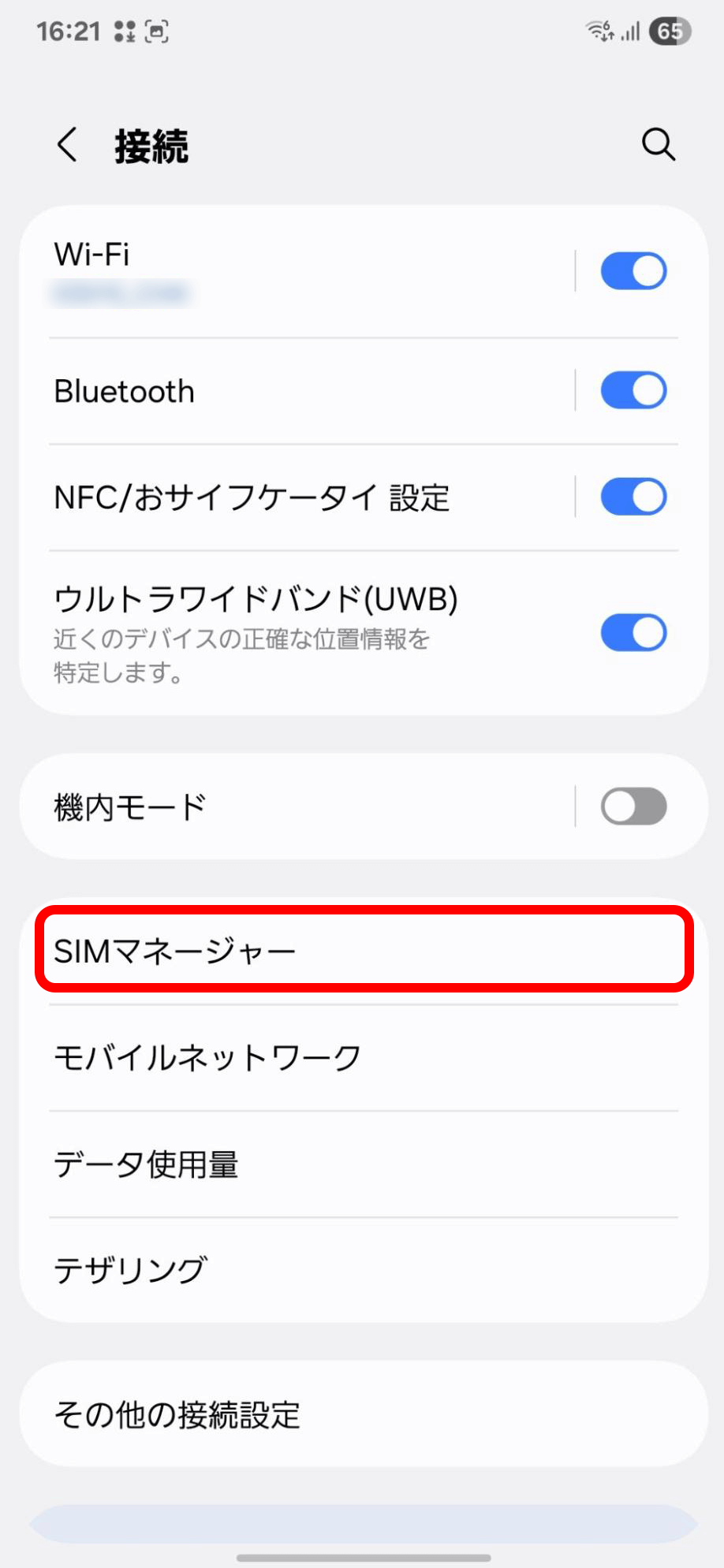「接続」から「SIMマネージャー」をタップ