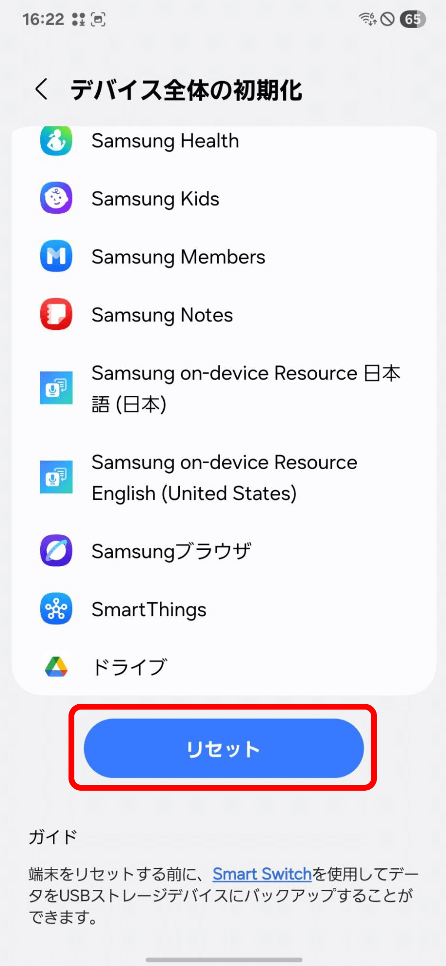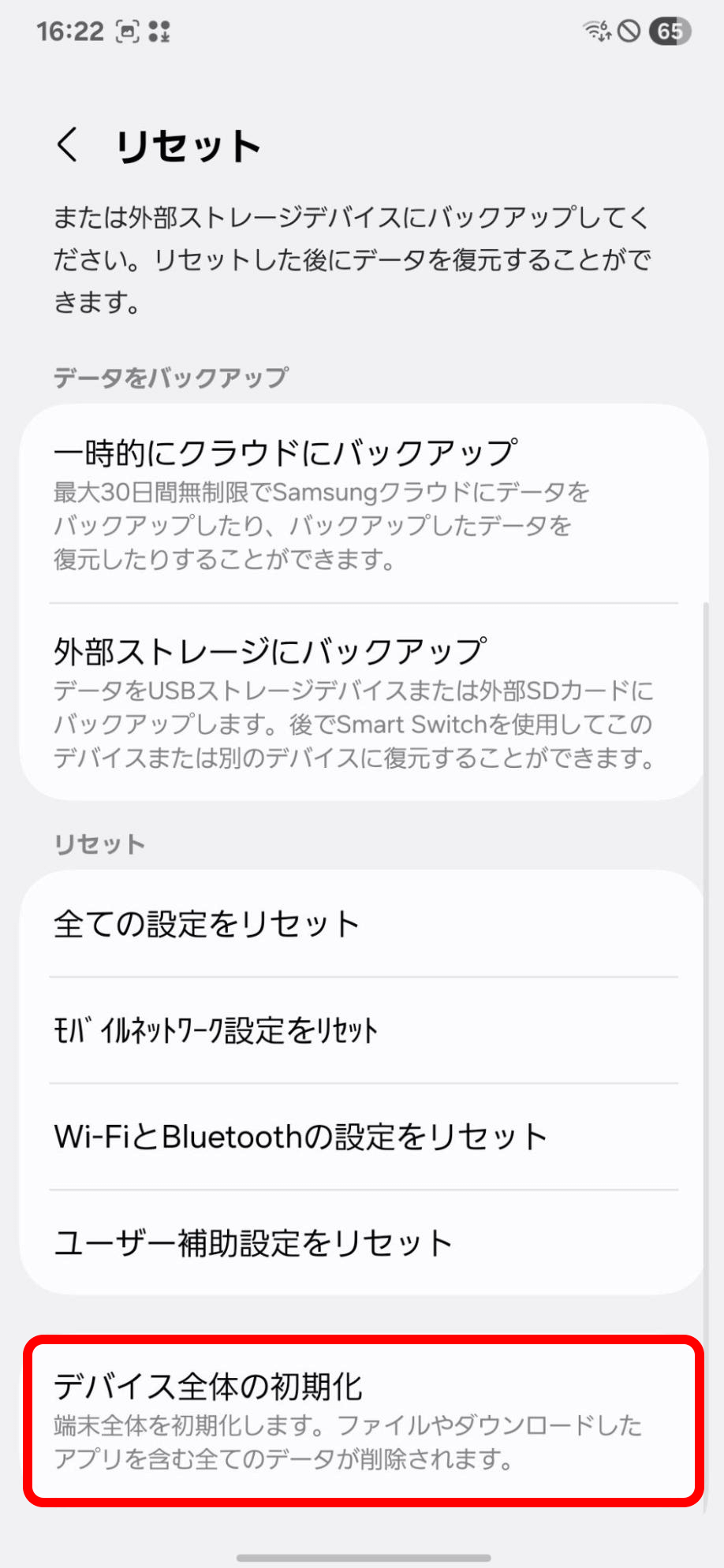 Galaxyスマホの初期化方法
