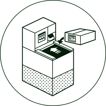 スマリボックス(右側)投函口の扉をスライドして開け、商品をボックス内へ投函ください。